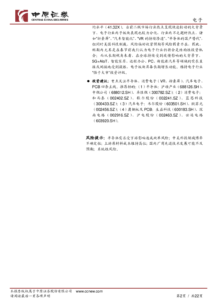 中原证券:电子行业月报:国内手机市场回暖,关注汽车电子、VR、折叠屏等新机会.pdf