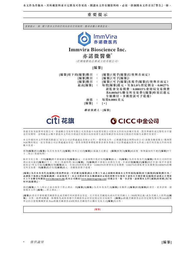 Immvira Bioscience Inc.亦诺微医药港交所IPO上市招股说明书.pdf
