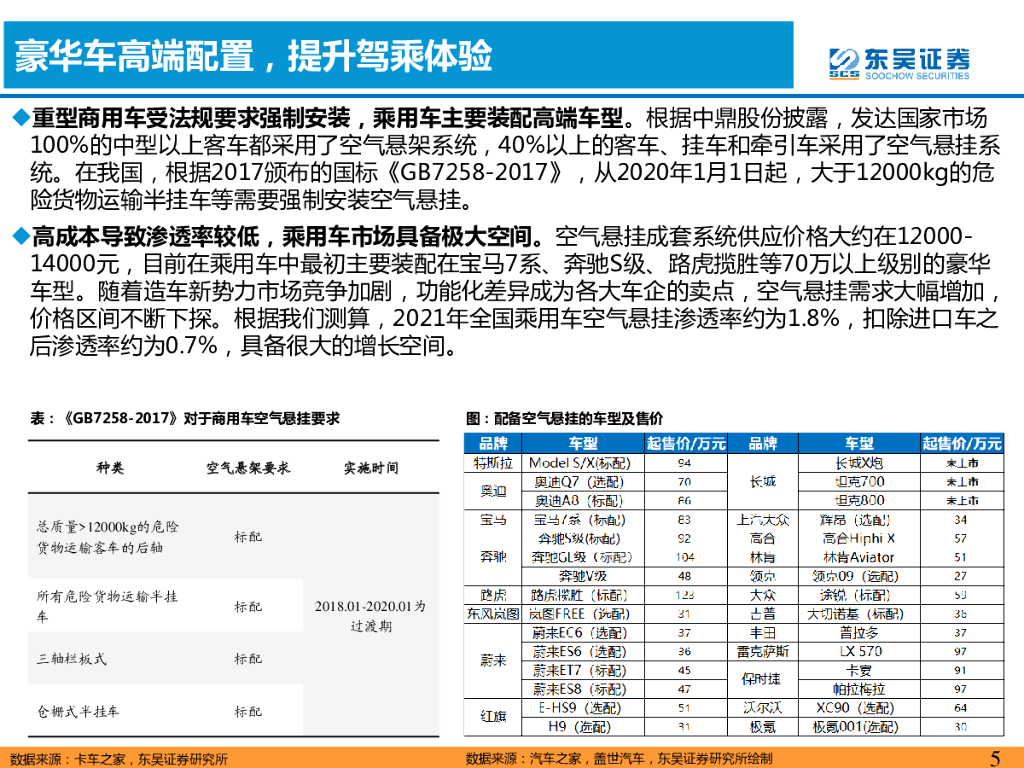 东吴证券:汽车与零部件行业专题报告:空气悬挂:提升驾乘体验高端配置,需求+供给驱动加速普及.pdf