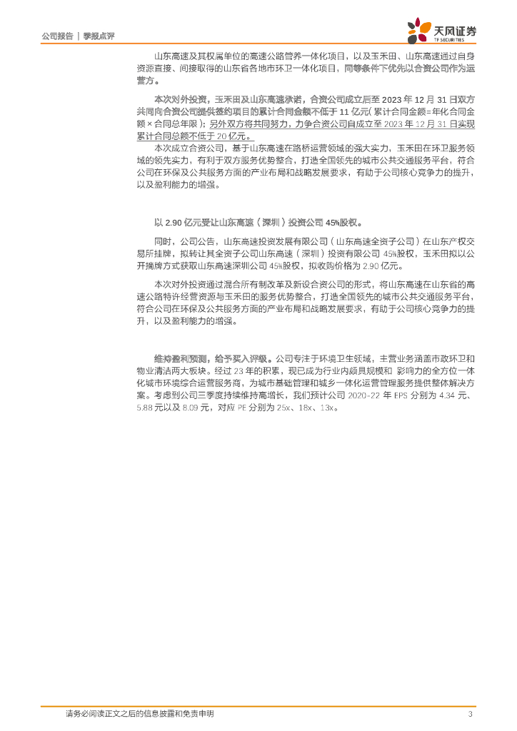 天风证券:玉禾田(300815)-Q1-3归母净利同比增121%,深度合作山东高速进军高速管养.pdf