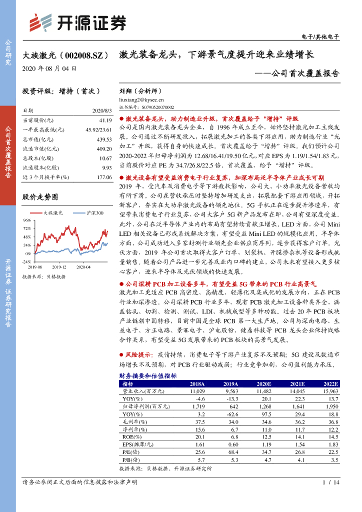 开源证券:大族激光(002008)-公司首次覆盖报告:激光装备龙头,下游景气度提升迎来业绩增长.pdf