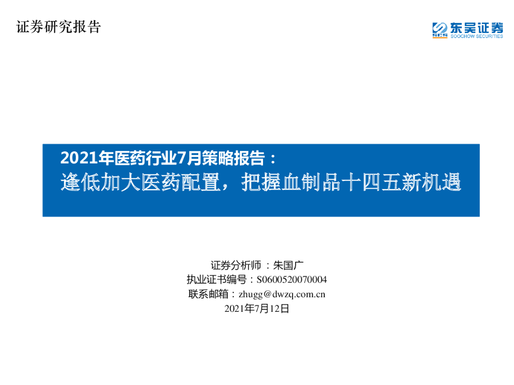 东吴证券:2021年医药行业7月策略报告:逢低加大医药配置,把握血制品十四五新机遇.pdf