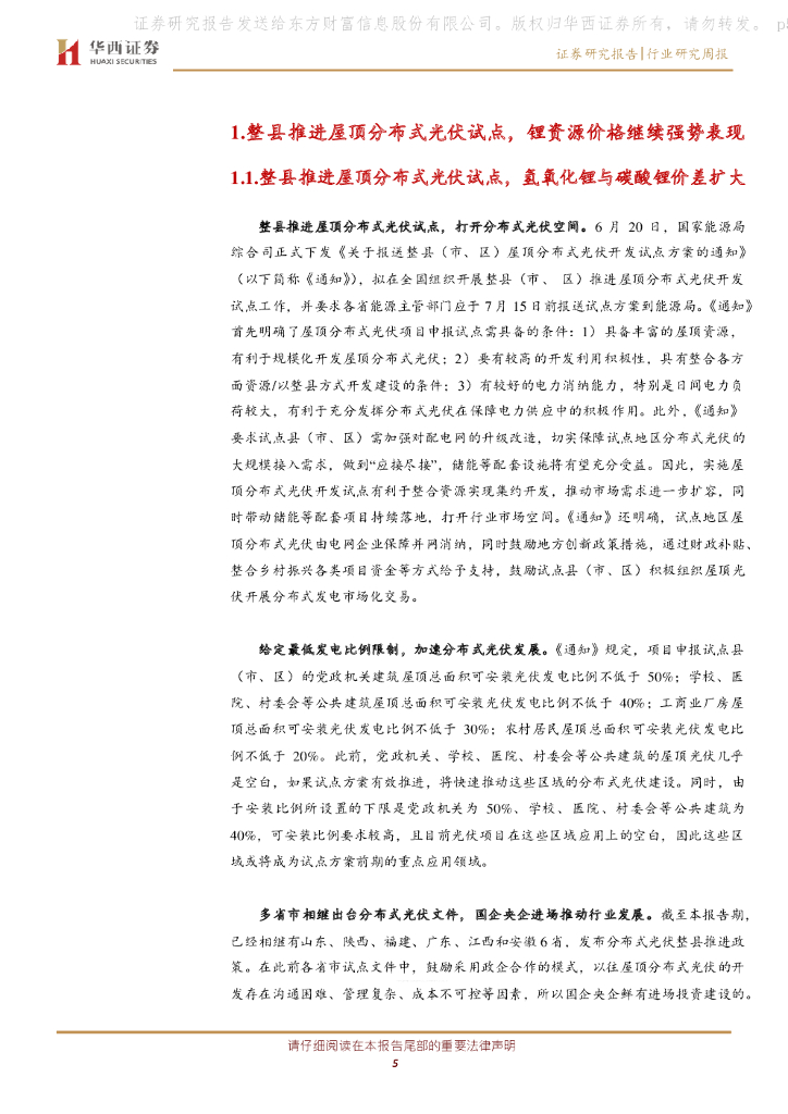 华西证券:公用事业行业:整县推进屋顶分布式光伏试点,锂资源价格继续强势表现.pdf