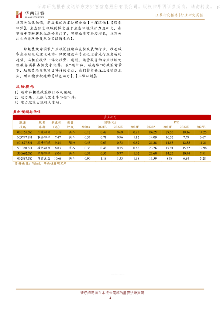 东吴证券:环保行业跟踪周报:【高能环境】受益金属价格上涨,【龙净环保】矿山绿电贡献业绩,重视水固红利价值