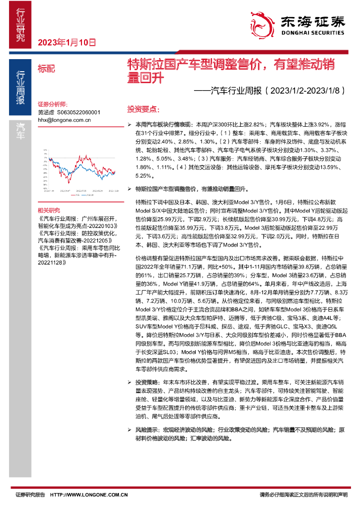 东海证券:汽车行业周报:特斯拉国产车型调整售价,有望推动销量回升.pdf