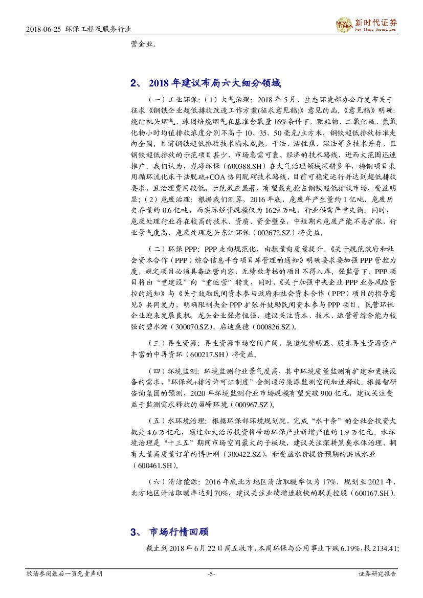 新时代证券:环保行业研究周报:污染防治攻坚战全面加强,强调资金投入向污染防治攻坚战倾斜.pdf