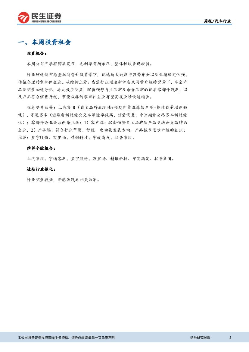 民生证券:汽车行业周报:三季报陆续发布 毛利率有所承压.pdf