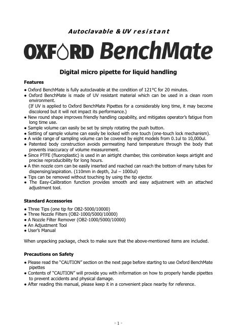 Oxford BenchMate 微量移液器 产品手册.pdf