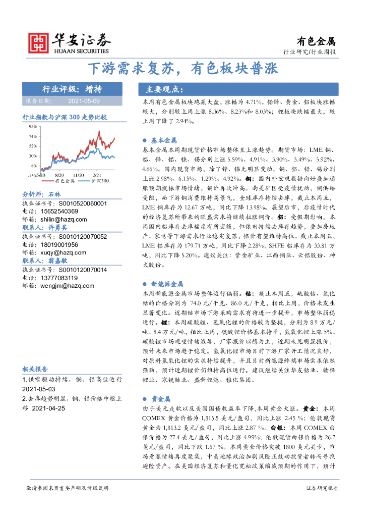 华安证券:有色金属行业周报:下游需求复苏,有色板块普涨.pdf