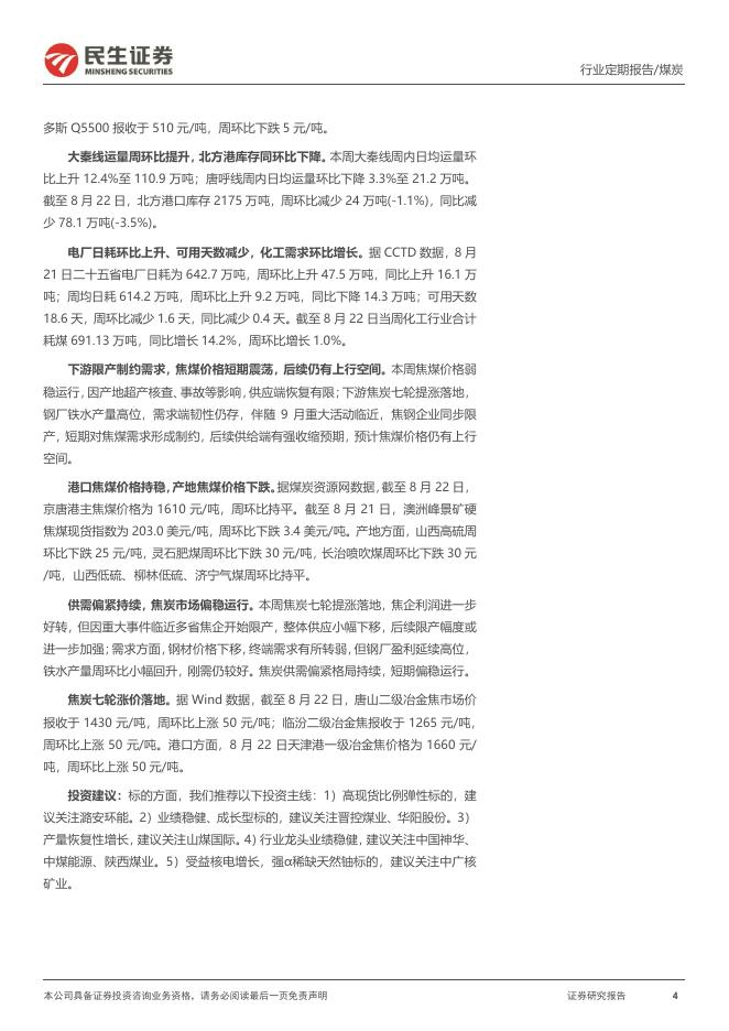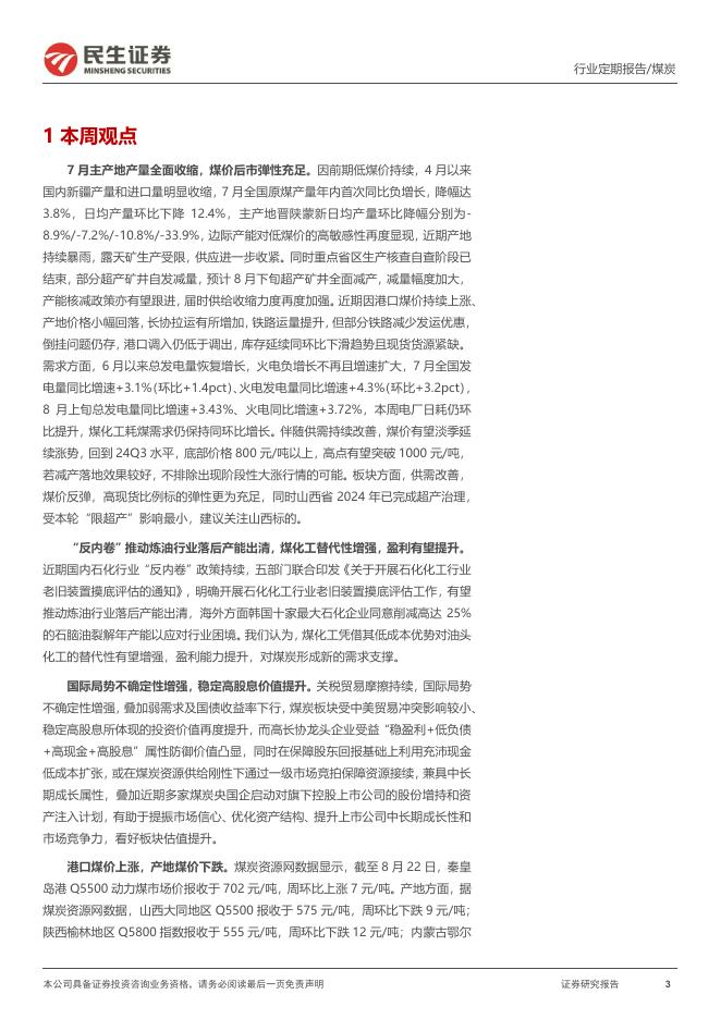 民生证券:煤炭周报:7月主产地产量全面收缩,煤价后市弹性充足.pdf