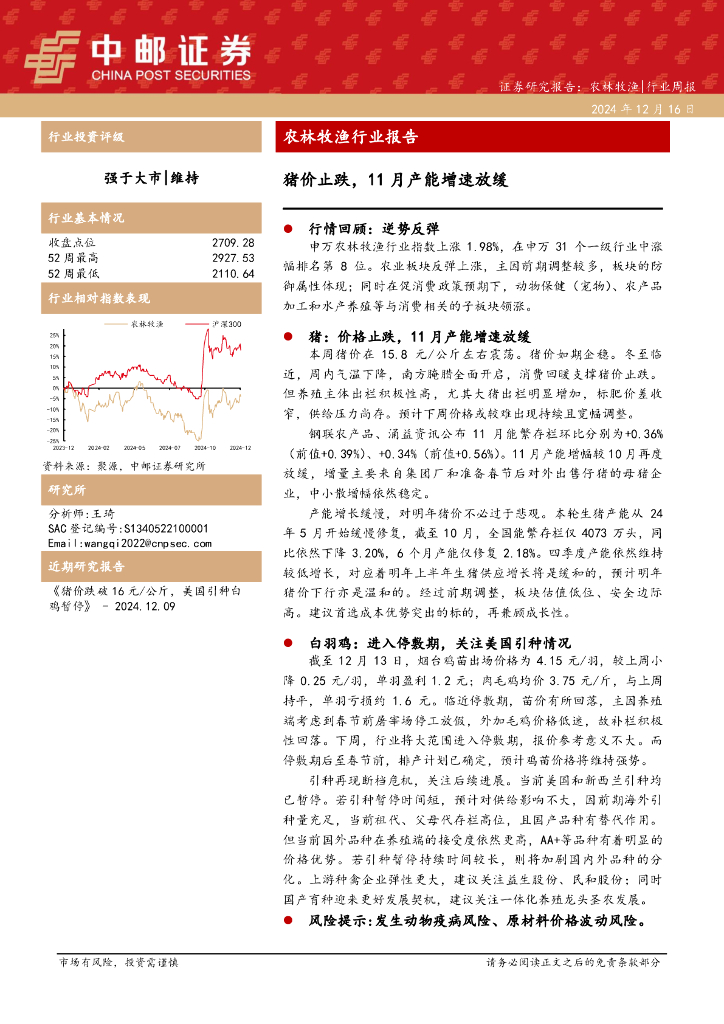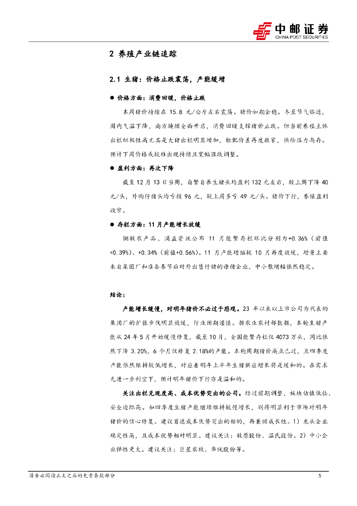 中邮证券:农林牧渔行业报告:猪价止跌,11月产能增速放缓.pdf