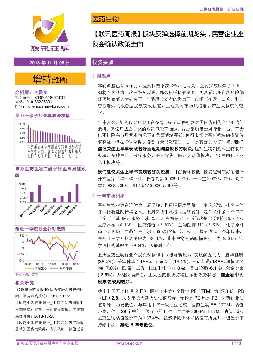 联讯证券:【联讯医药周报】板块反弹选择前期龙头,民营企业座谈会确认政策走向.pdf