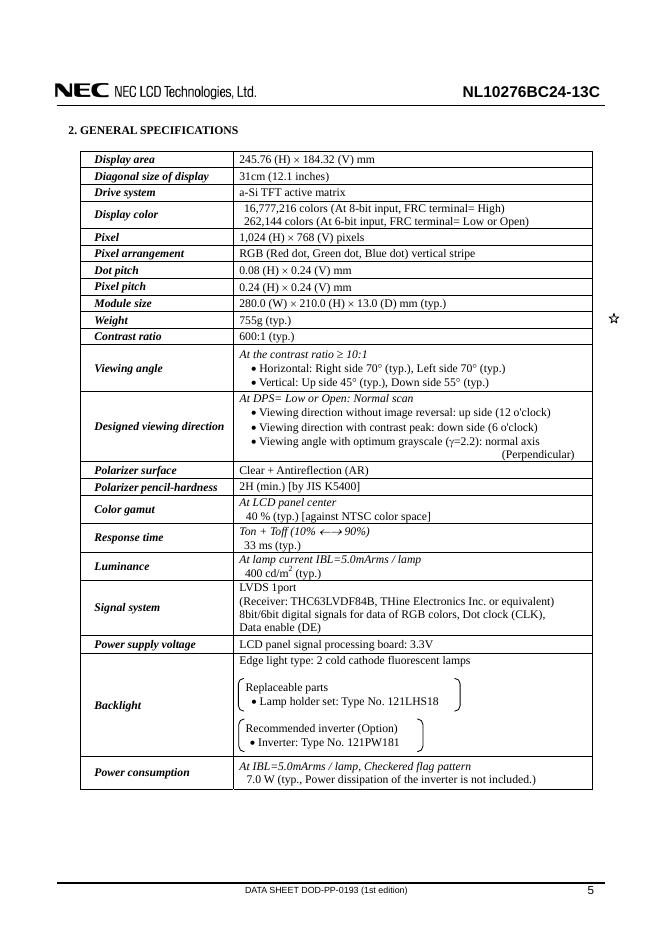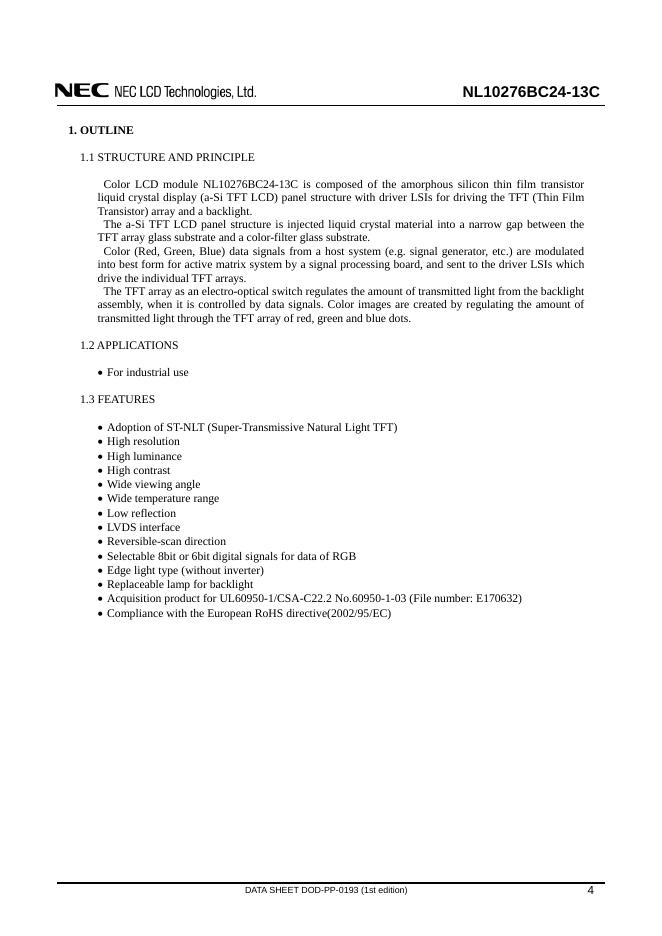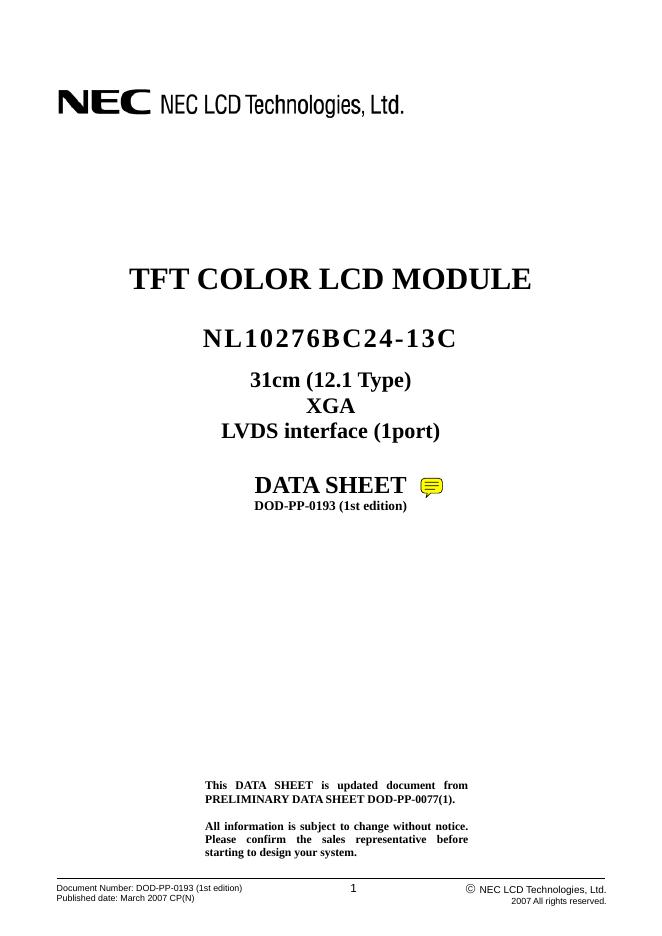 NEC NL10276BC24-13C TFT COLOT LCD MODULE 数据手册.pdf