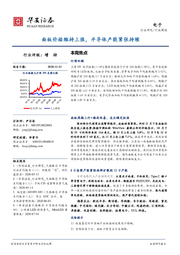 华安证券:电子行业周报:面板价格维持上涨,半导体产能紧张持续.pdf