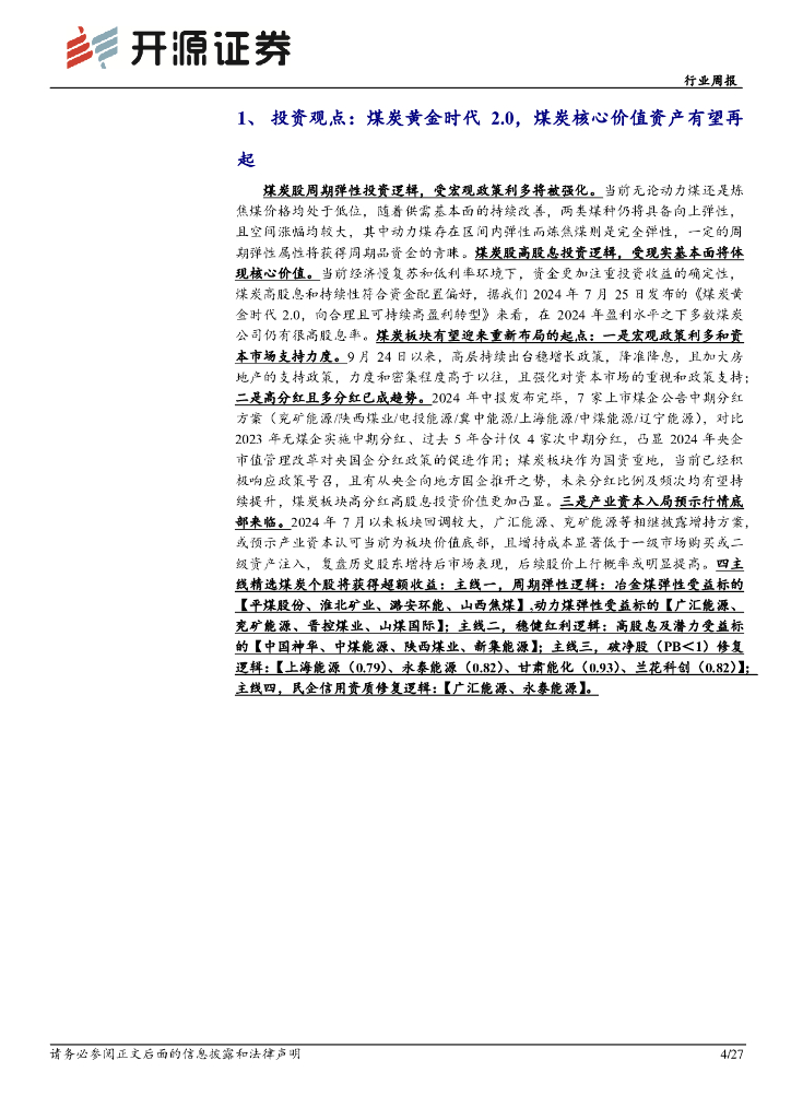 开源证券:煤炭行业周报:一揽子化债组合拳推出,煤炭双逻辑且四主线布局行业周报.pdf
