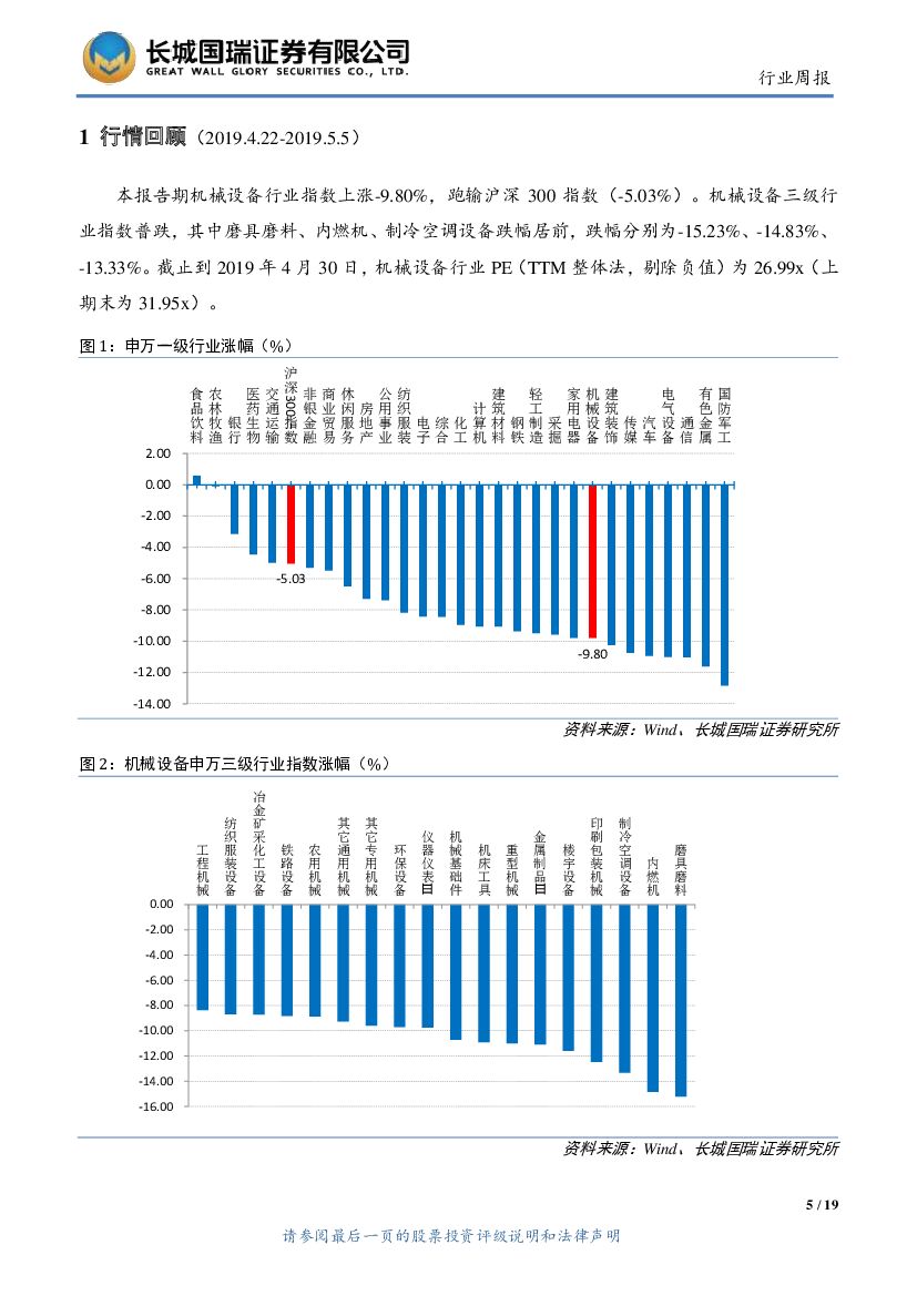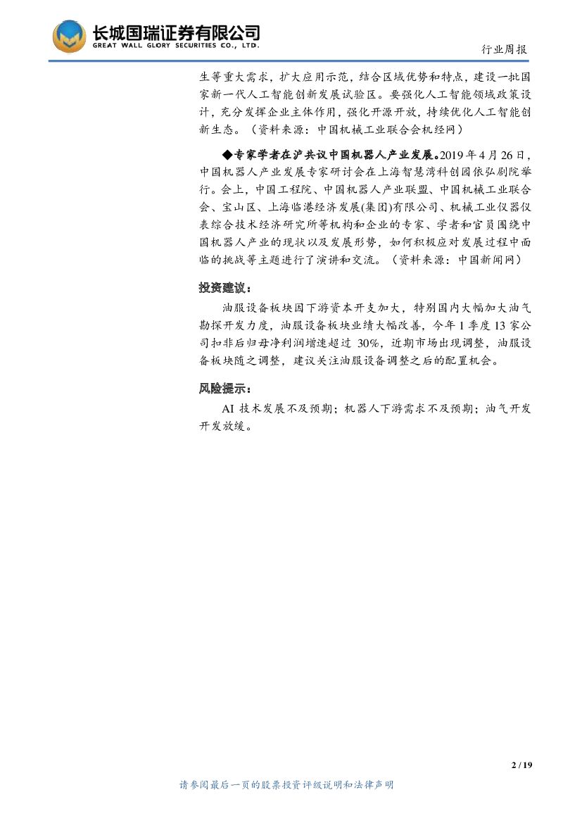 长城国瑞证券:机械设备行业双周报2019年第9期(总第130期):建议关注油服设备板块调整后的配置机会.pdf