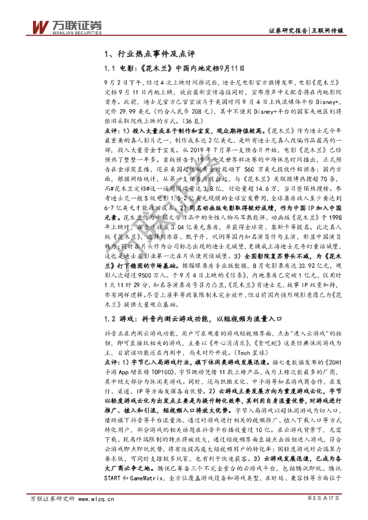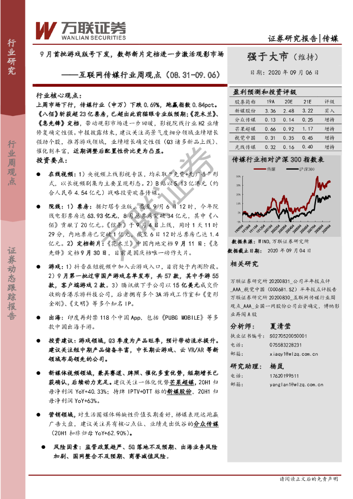万联证券:互联网传媒行业周观点:9月首批游戏版号下发,数部新片定档进一步激活观影市场.pdf