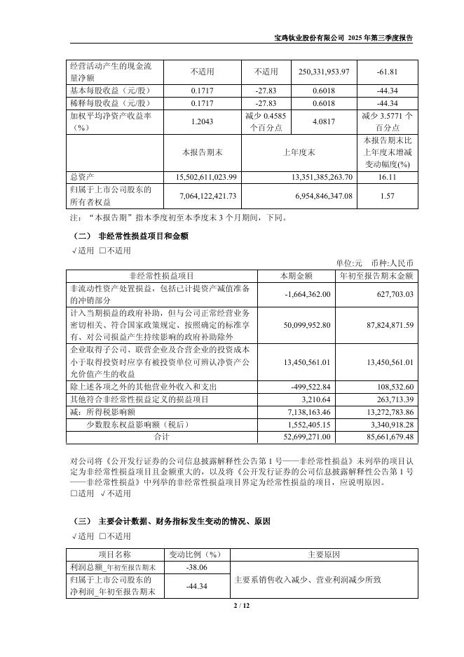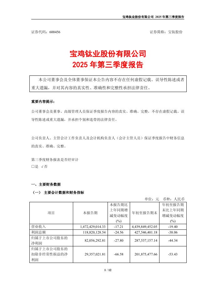 600456-宝钛股份:宝鸡钛业股份有限公司2025年第三季度报告.pdf