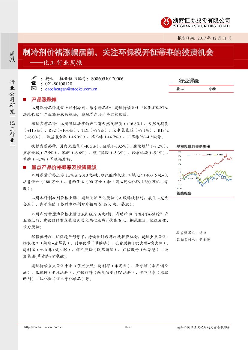浙商证券:化工行业周报:制冷剂价格涨幅居前,关注环保税开征带来的投资机会.pdf