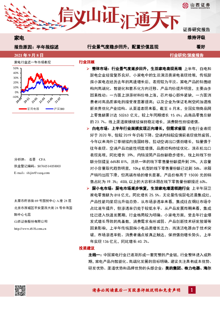 山西证券:家电半年报综述:行业景气度稳步回升,配置价值显现.pdf