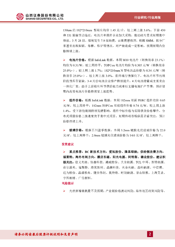 山西证券:太阳能行业周报:缅甸地震对硅片开工造成影响,产业链中下游价格持续结构性上涨.pdf