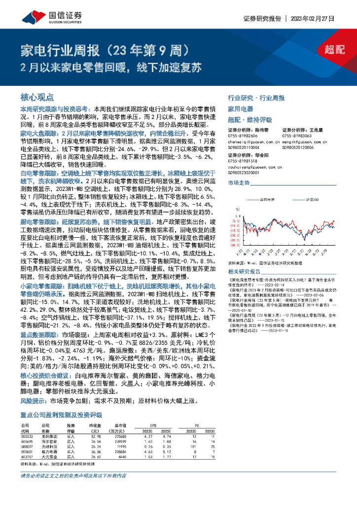 国信证券:家电行业周报(23年第9周):2月以来家电零售回暖,线下加速复苏.pdf