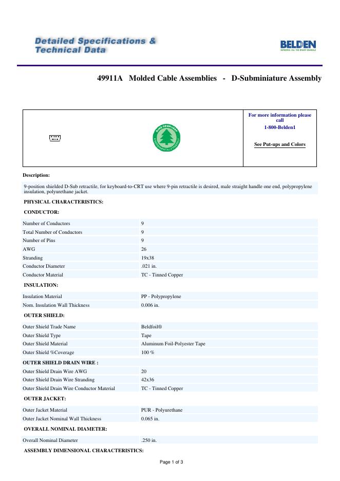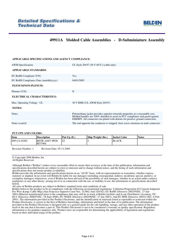 BELDEN 49911A Molded Cable Assemblies - D-Subminiature Assembly 数据手册.pdf