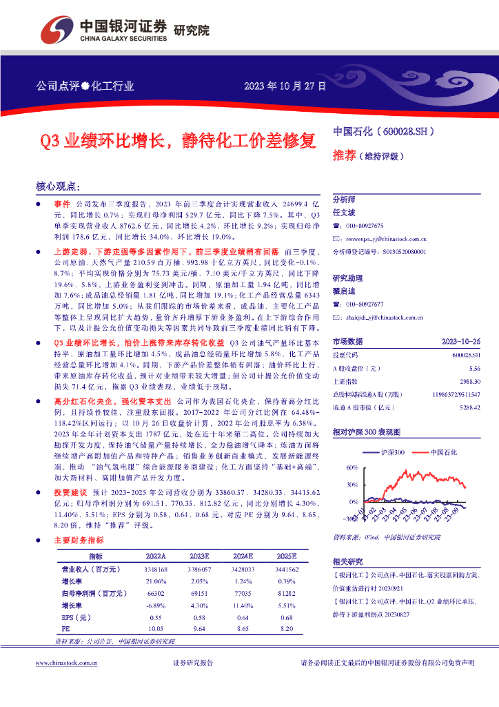 中国银河:中国石化(600028)-Q3业绩环比增长,静待化工价差修复.pdf