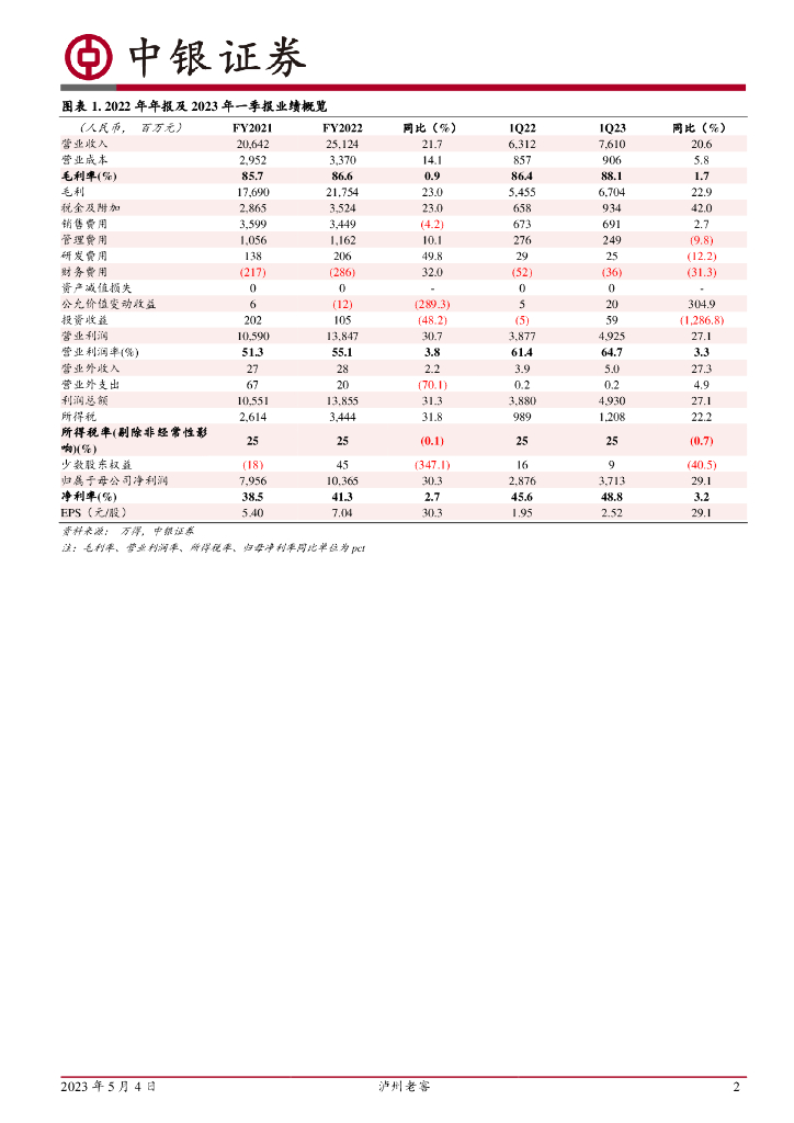 中银证券:泸州老窖(000568)-2022年业绩超预期,1Q23延续较快增速.pdf