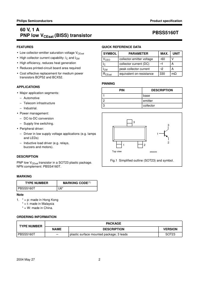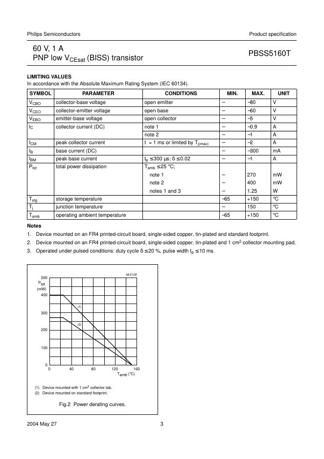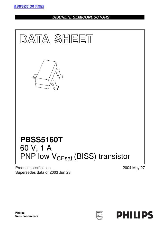 philips PBSS5160T 60 V, 1 A PNP low VCEsat (BISS) transistor 数据手册.pdf