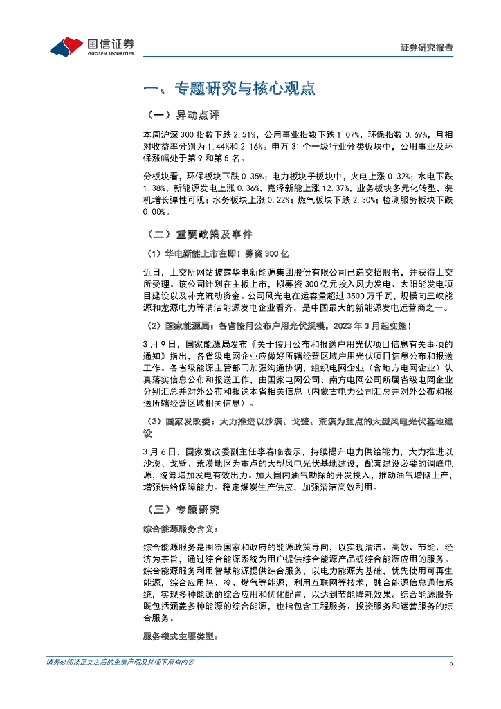 国信证券:环保与公用事业202303第2期:华电新能上市在即,综合能源服务推动能源结构变革.pdf