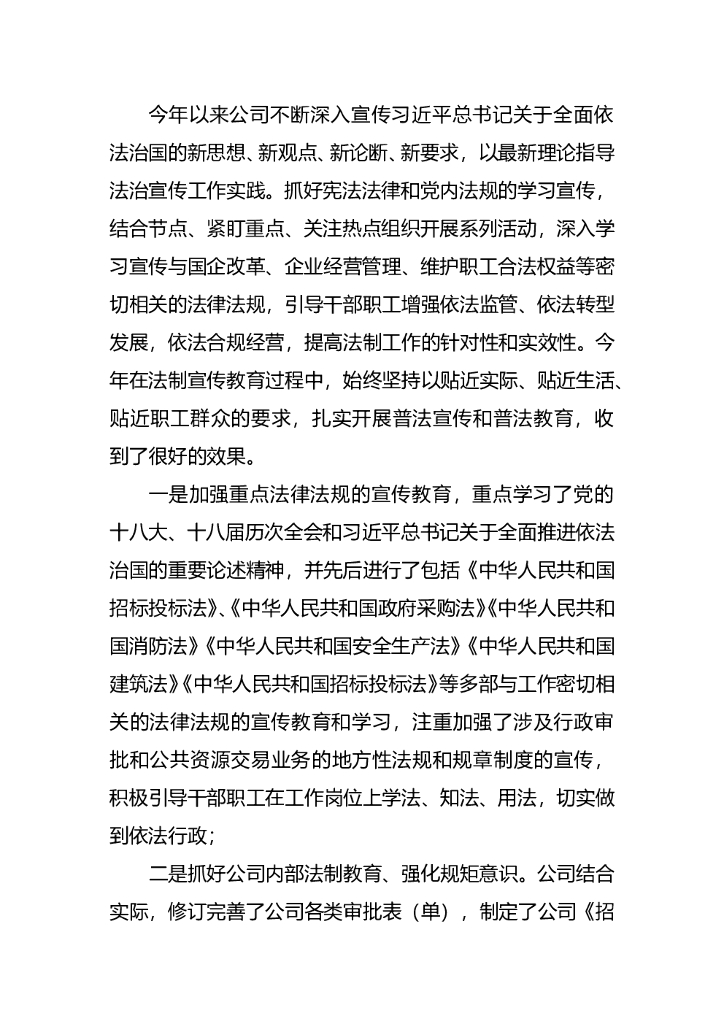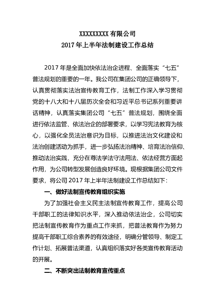 公司2017年上半年法制建设工作总结.doc