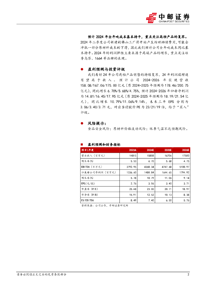 中邮证券:重庆啤酒(600132)-24Q1成本改善超预期,期待高档产品复苏.pdf