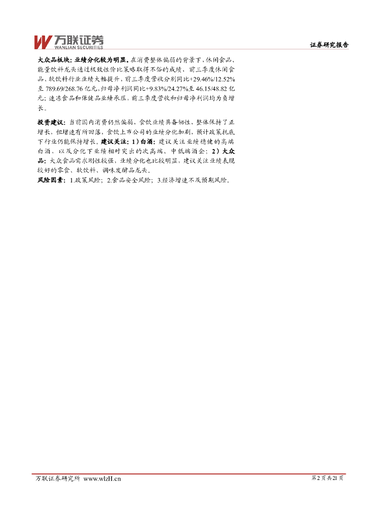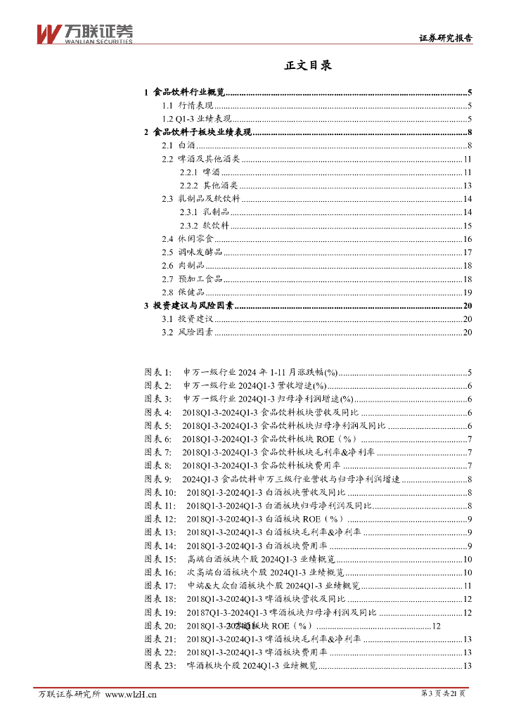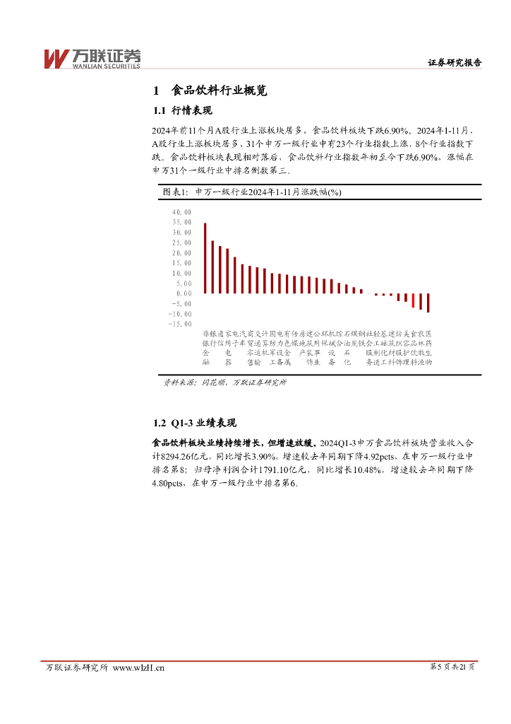 万联证券:食品饮料2024三季度业绩综述报告:业绩增速下降,白酒分化加剧.pdf