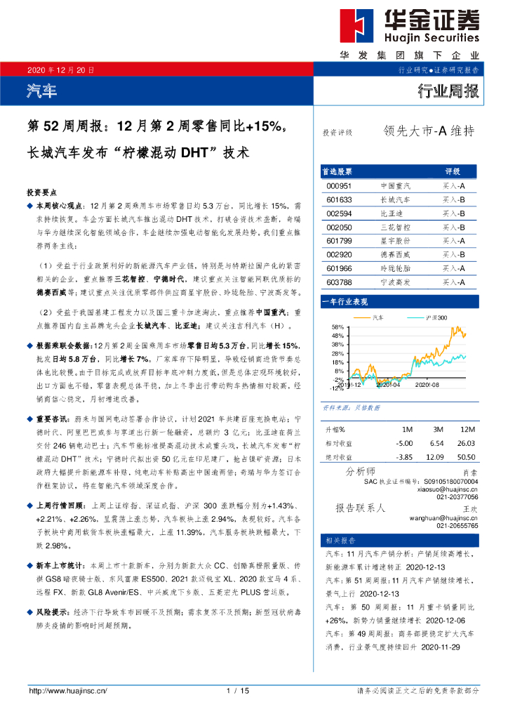 华金证券:汽车第52周周报:12月第2周零售同比+15%,长城汽车发布“柠檬混动DHT”技术.pdf