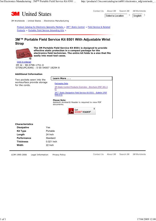 3M Portable Field Service Kit 8501 With Adjustable Wrist Strap 说明书.pdf