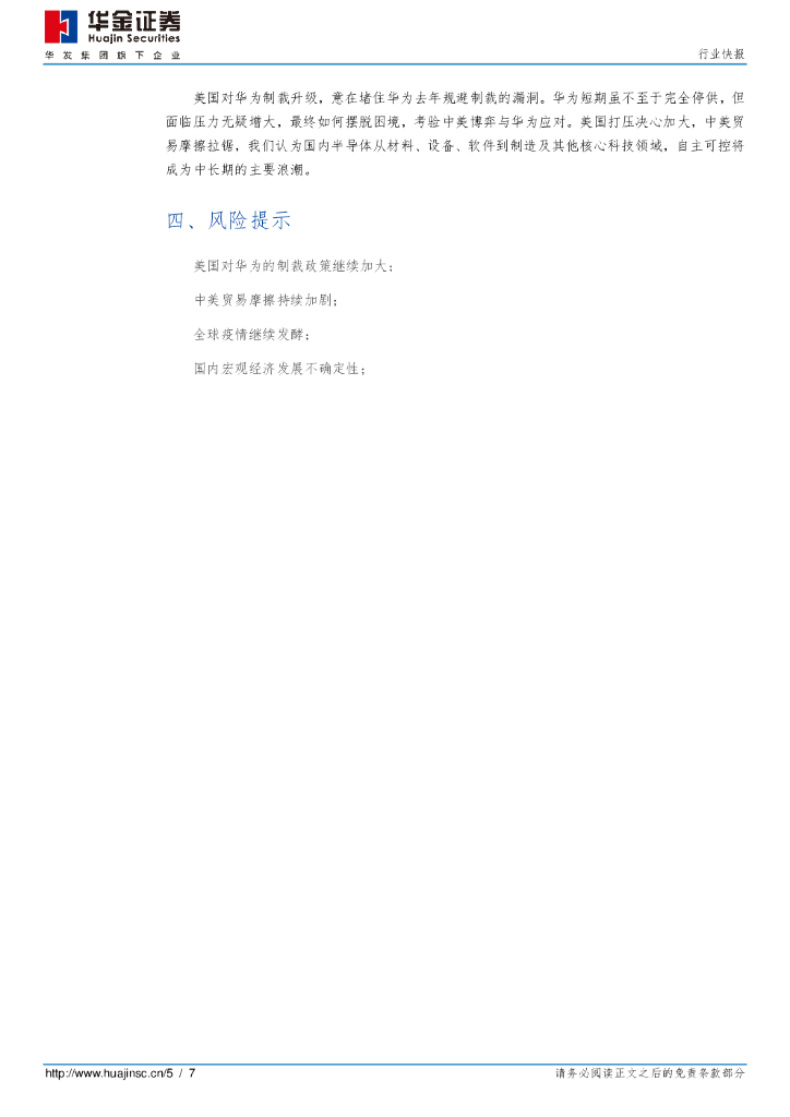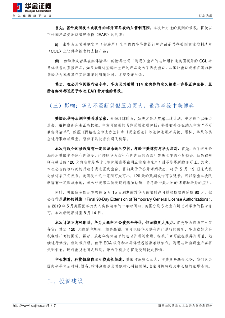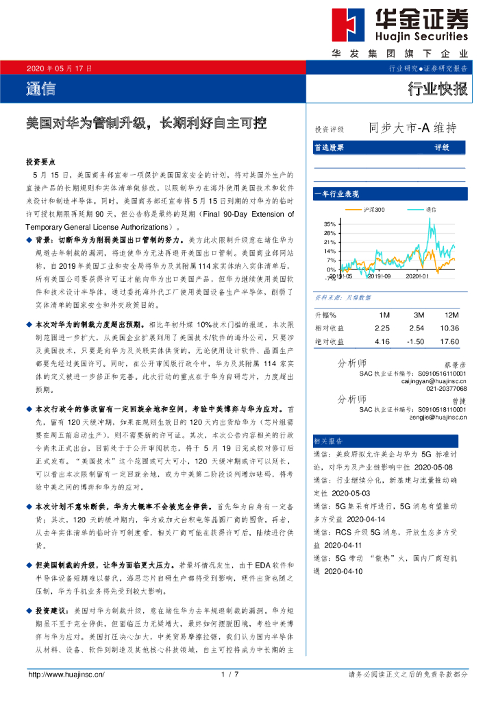 华金证券:通信行业快报:美国对华为管制升级,长期利好自主可控.pdf