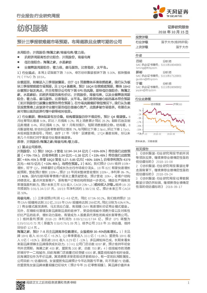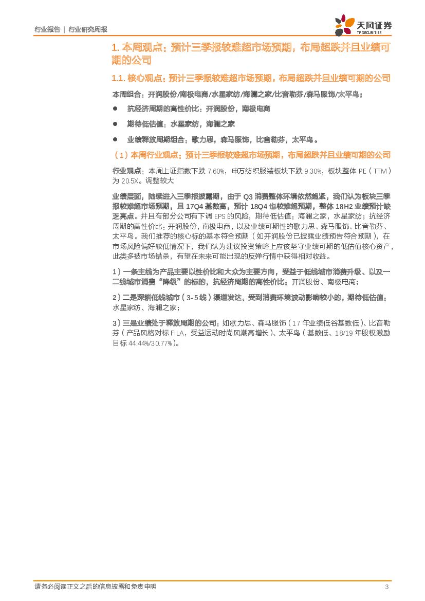 天风证券:纺织服装行业研究周报:预计三季报较难超市场预期,布局超跌且业绩可期的公司.pdf