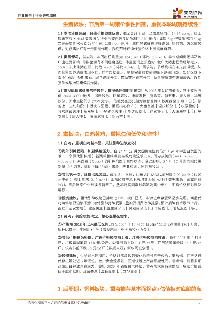 天风证券:农林牧渔行业2025年第6周周报:25年春节后第一周,如何看待农业各板块投资机会?.pdf