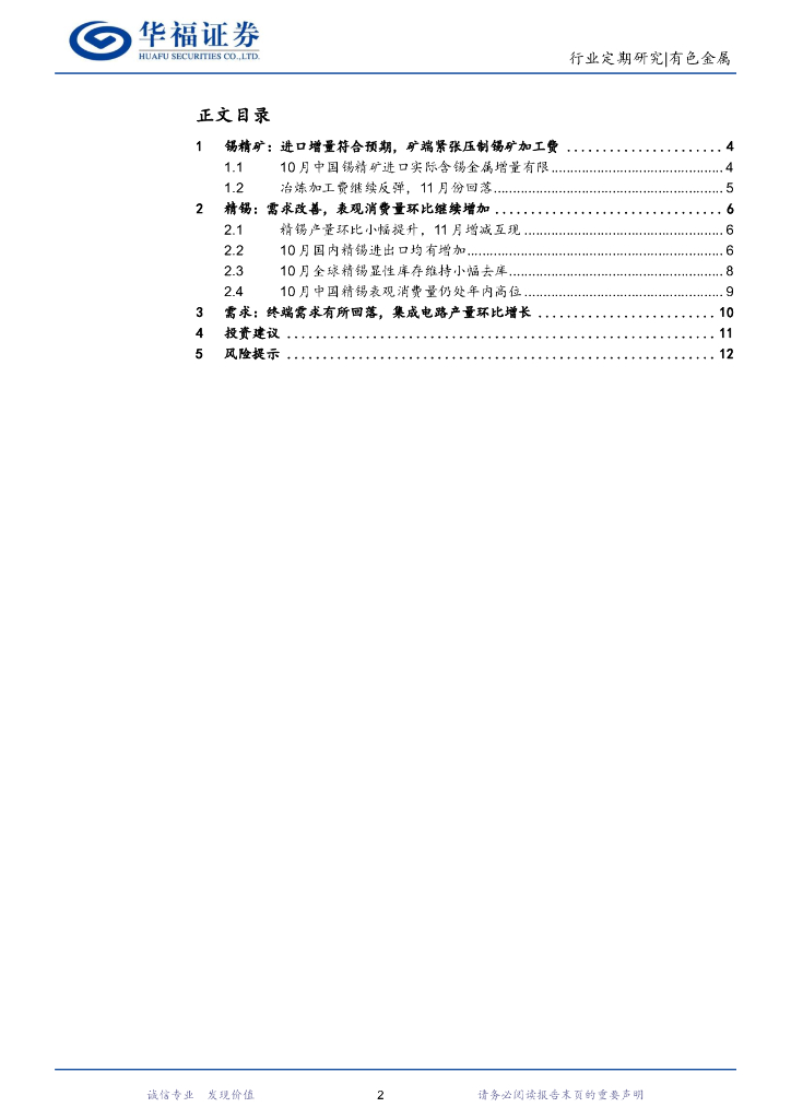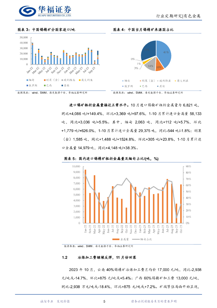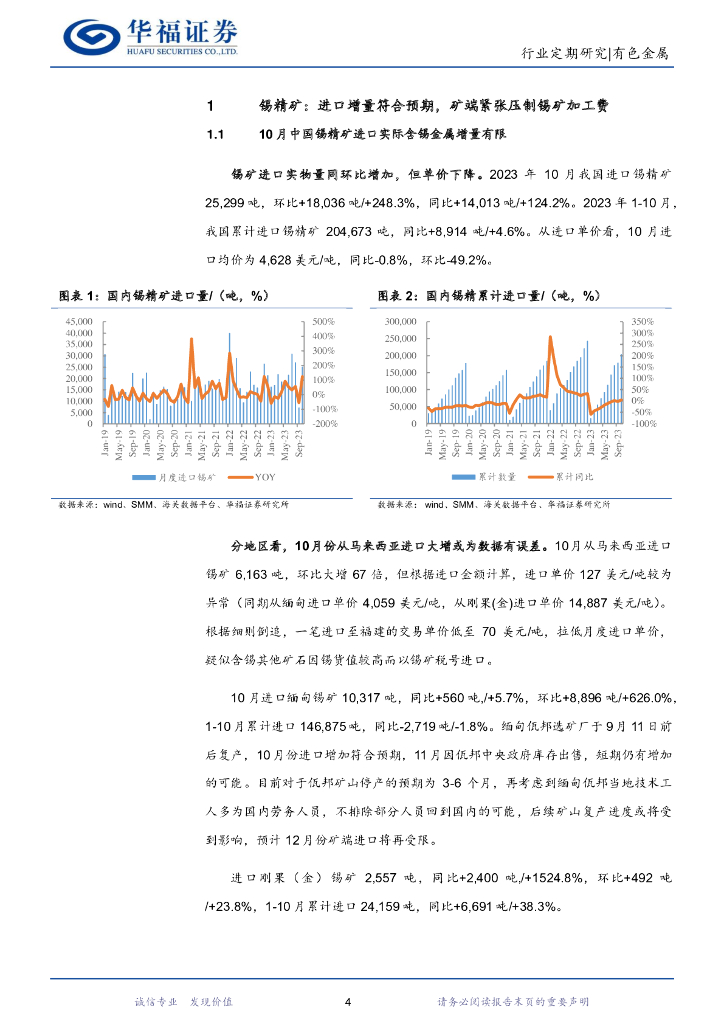 华福证券:有色金属行业:锡月度数据跟踪:10月精矿进口符合预期,矿端紧张局面或于12月份开始凸显.pdf