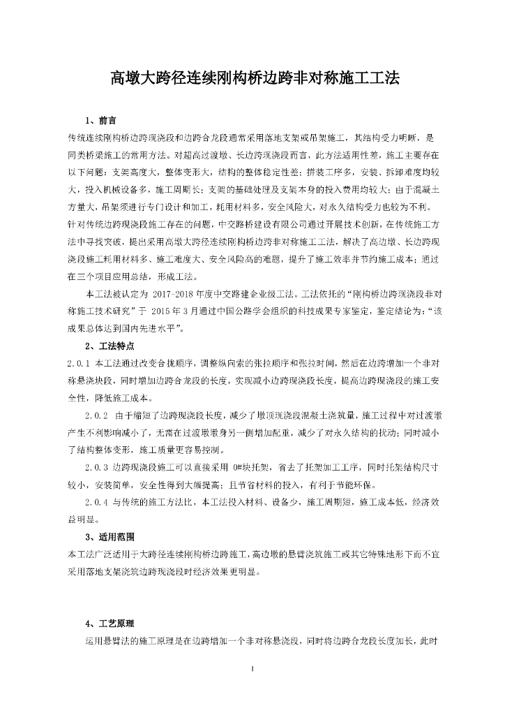 高墩大跨径连续刚构桥边跨非对称施工工法.pdf