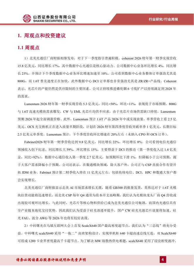 山西证券:通信行业周跟踪:北美光通信财报指引积极,曙光发布ScaleX640点燃国产超节点新高度.pdf