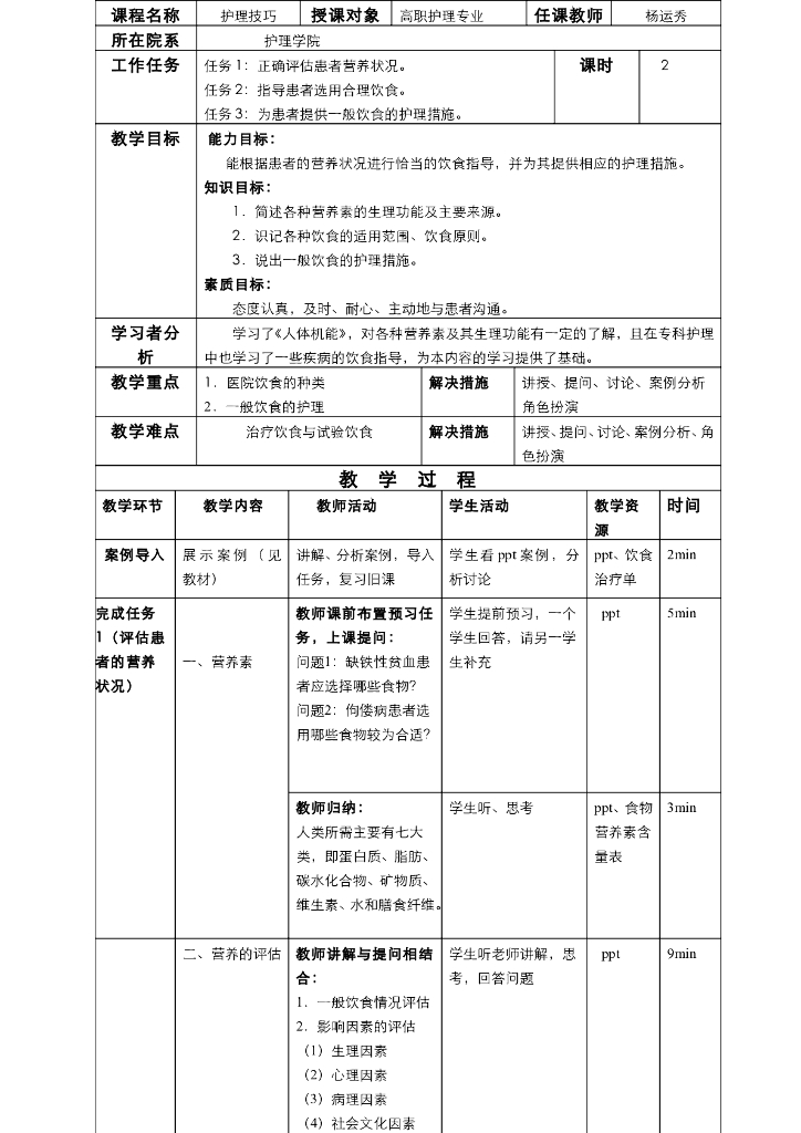 《护理技巧》电子教案-任务一 一般患者饮食护理.pdf