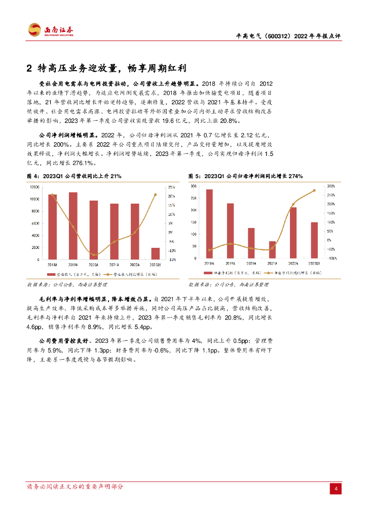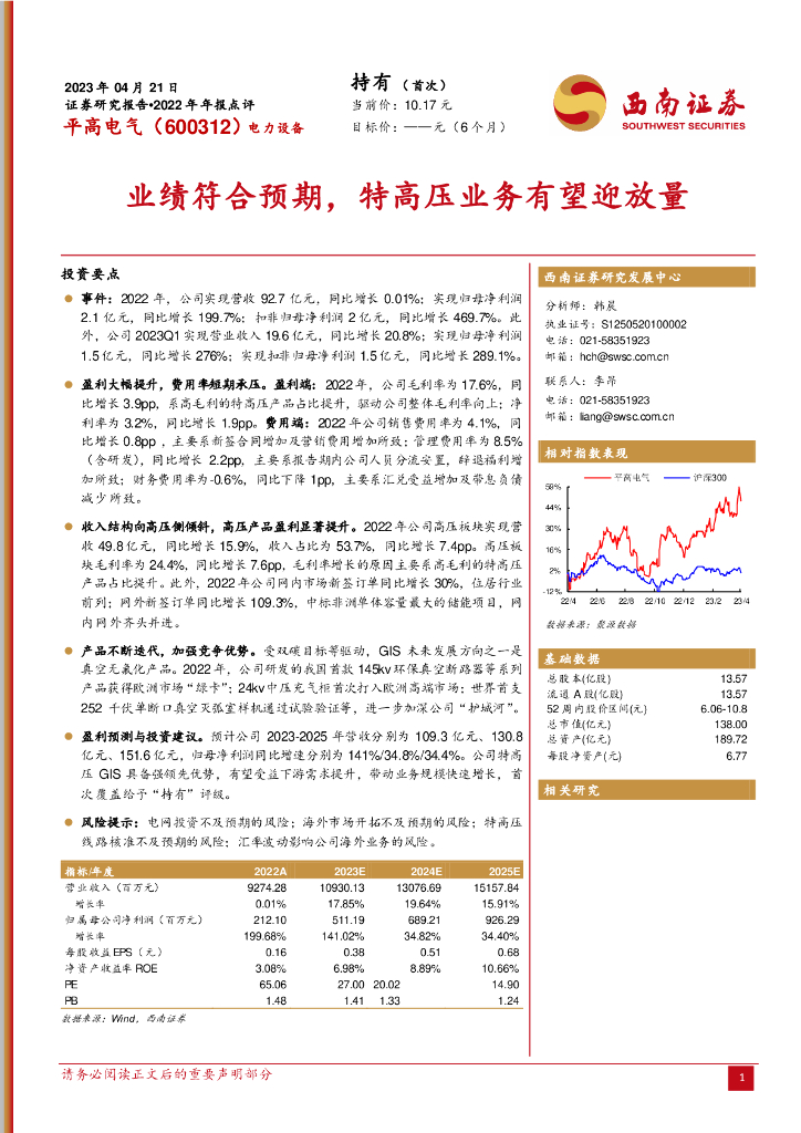 西南证券:平高电气(600312)-业绩符合预期,特高压业务有望迎放量.pdf