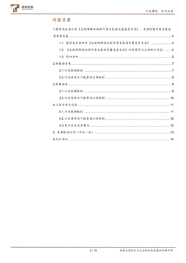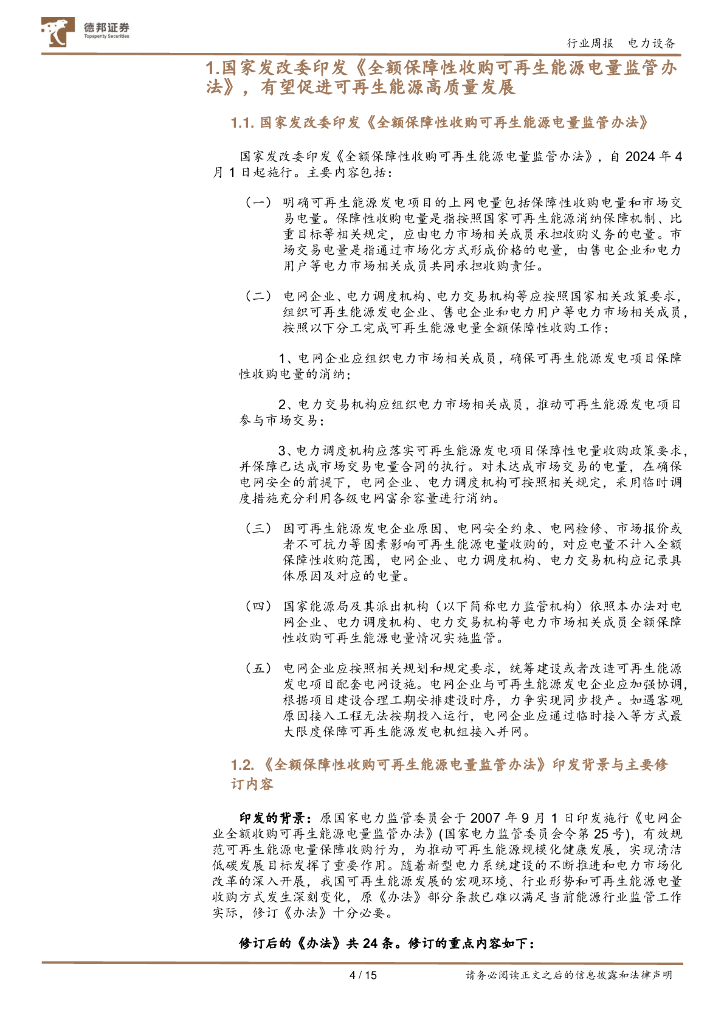 德邦证券:电力设备及新能源行业周报:国家发改委印发《全额保障性收购可再生能源电量监管办法》,有望促进可再生能源高质量发展.pdf