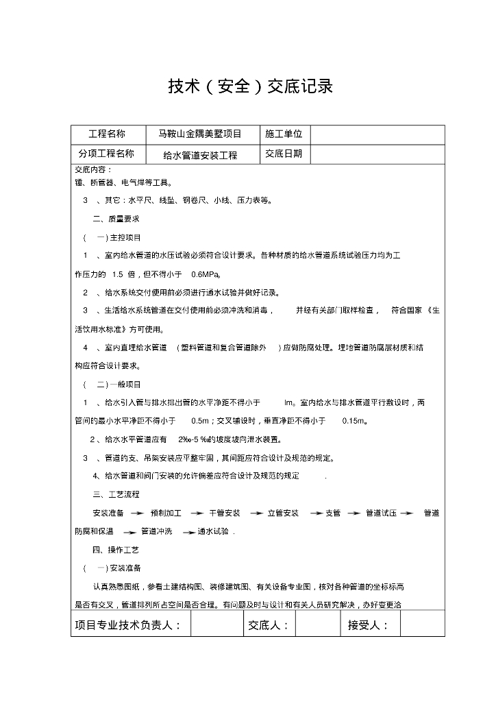 马鞍山金隅美墅项目给排水技术交底.pdf