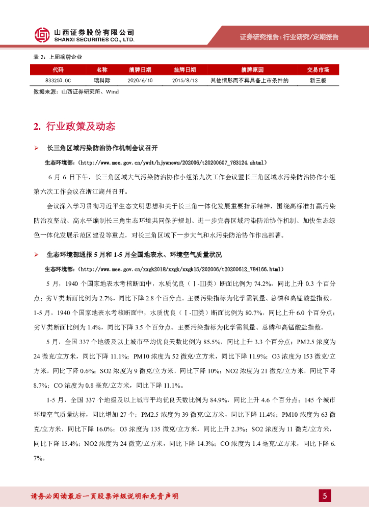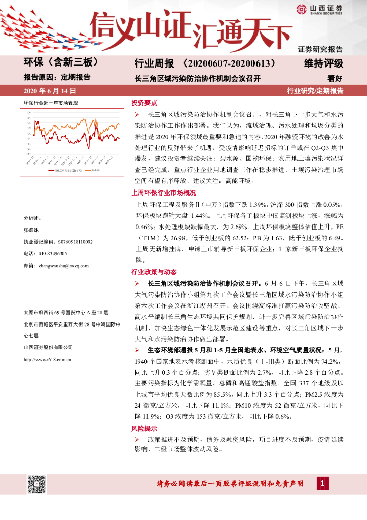 山西证券:环保(含新三板)行业周报:长三角区域污染防治协作机制会议召开.pdf
