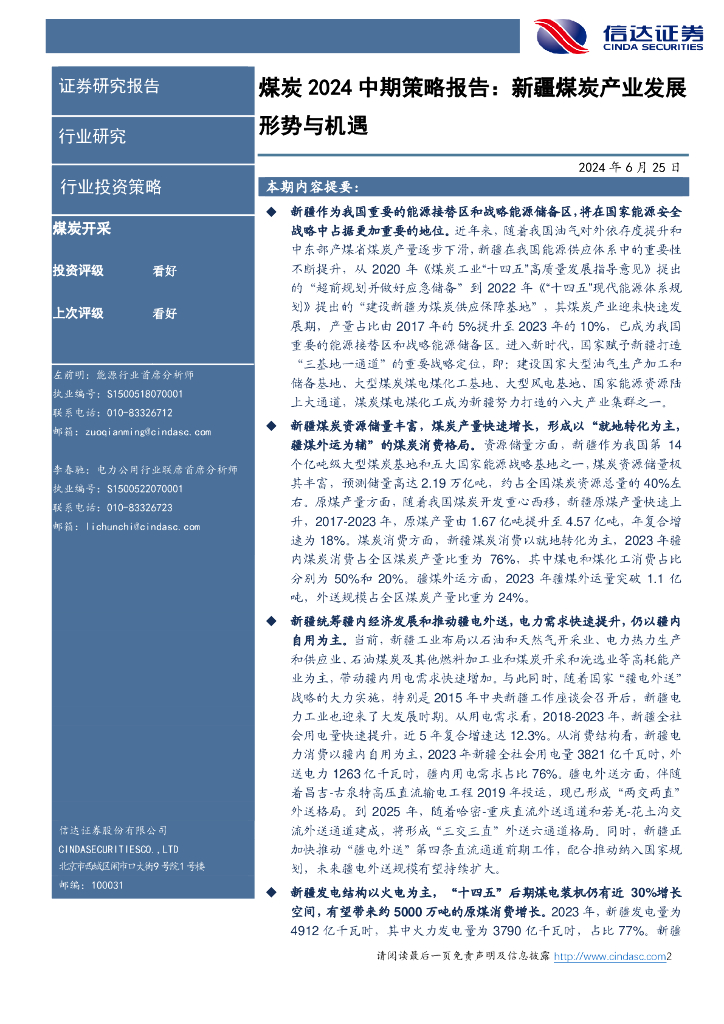 信达证券:煤炭2024中期策略报告:新疆煤炭产业发展形势与机遇.pdf