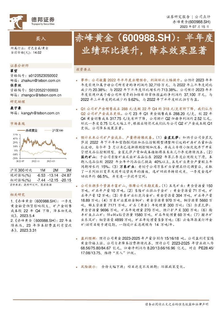 德邦证券:赤峰黄金(600988)-半年度业绩环比提升,降本效果显著.pdf