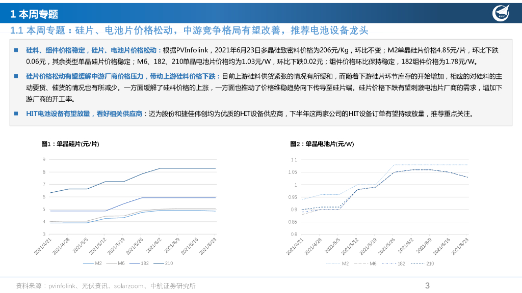 中航证券:高端制造行业周报:硅片、电池片价格松动,光伏中游竞争格局或改善;碳交易方式明确,看好碳市场受益企业.pdf